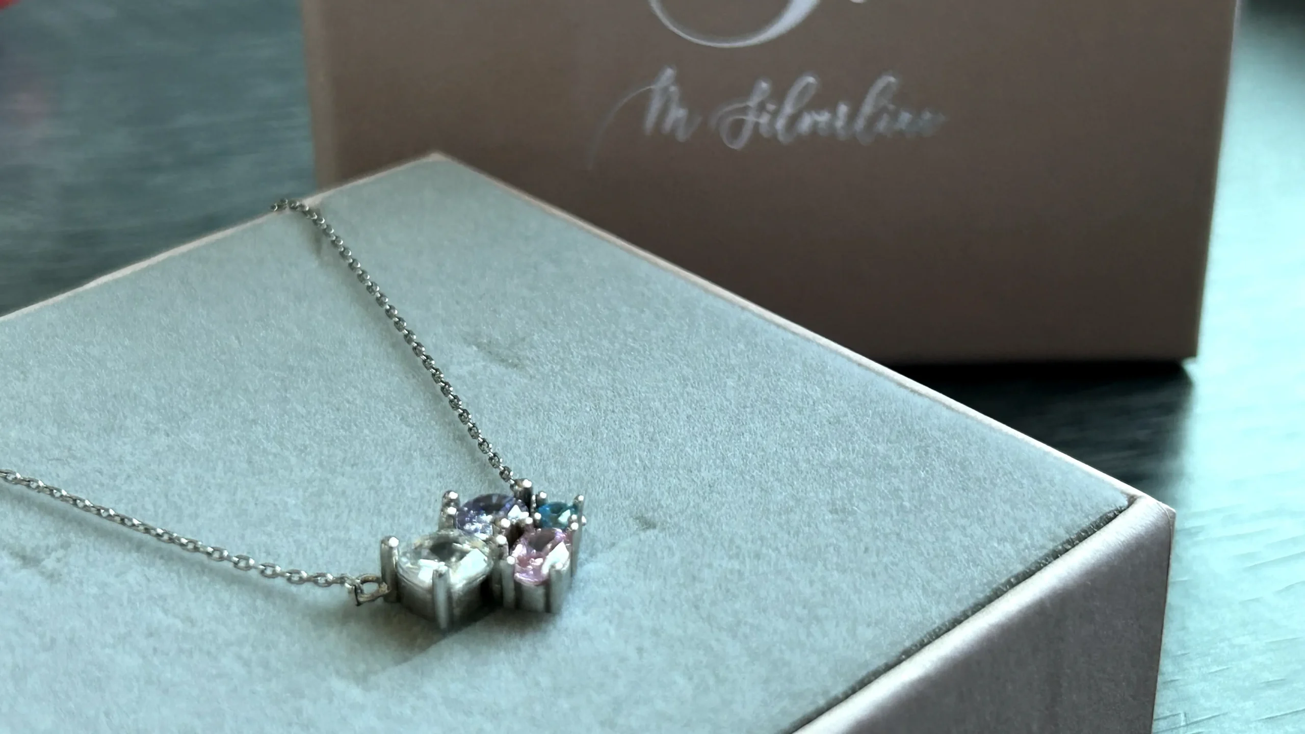 A minimalist yet colorful necklace featuring a cluster of uniquely shaped multicolored gemstones, exuding vibrancy and charm.