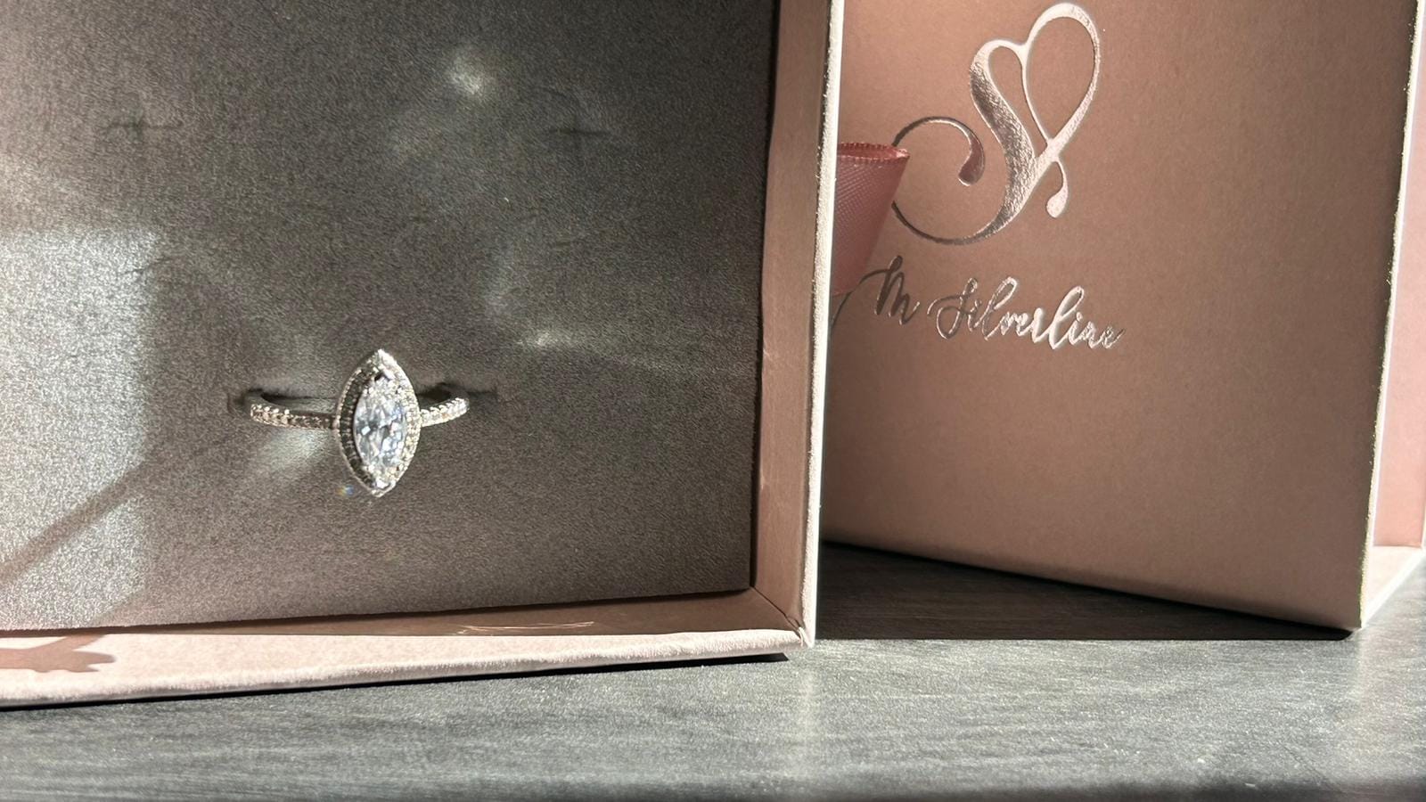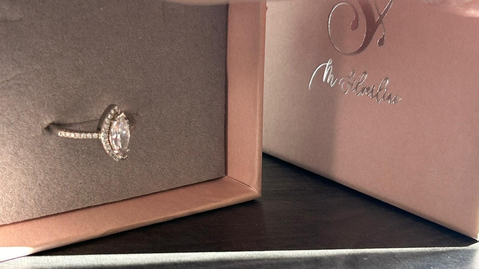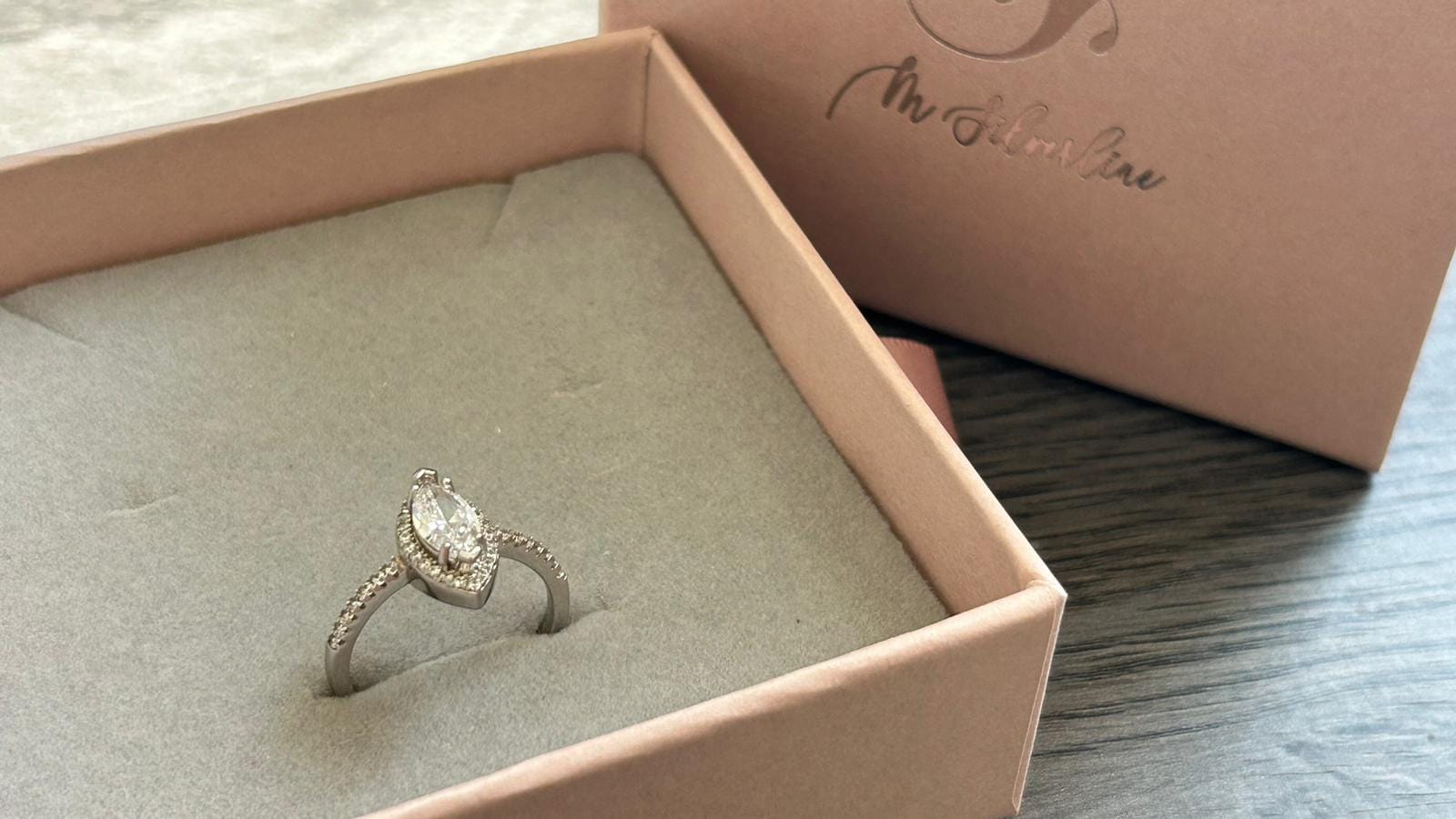 | Gems | A striking marquise-cut gemstone at the center, encircled by a halo of shimmering stones for enhanced brilliance. |