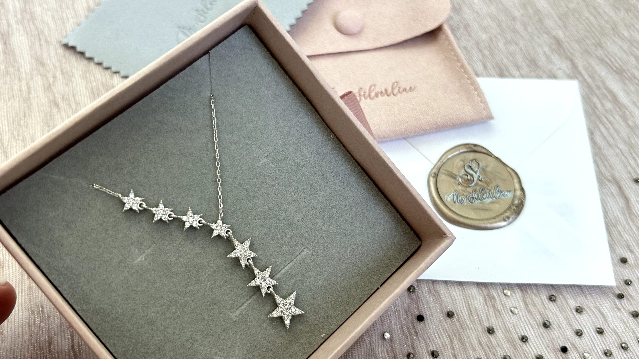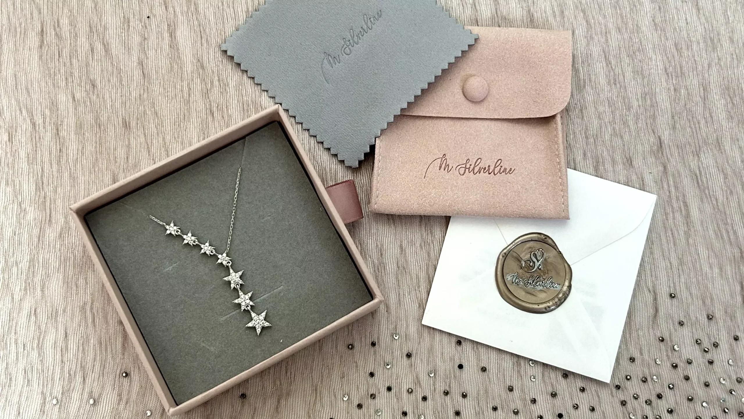 | Packaging | comes in a premium blush pink box, suede pouch, branded cleaning cloth and Mirasilverline sealed envelope. |